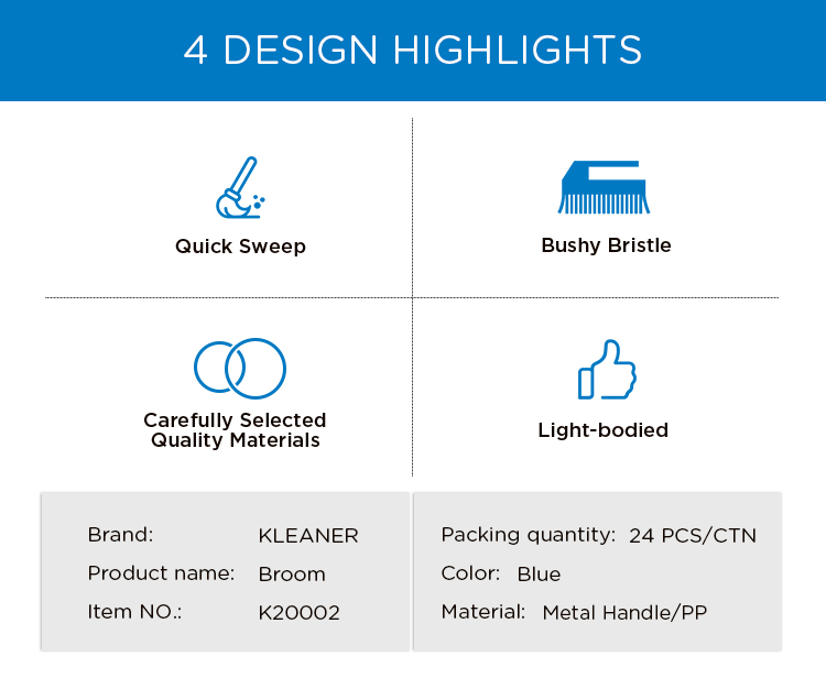 A vassoura angular leve K20002 apresenta uma cabeça inclinada de trinta graus que alcança facilmente sob os móveis e cantos. As cerdas macias sinalizadas retêm a poeira fina sem riscar a madeira ou pisos laminados. Pesando apenas trezentos gramas, esta vassoura reduz o cansaço dos braços durante a limpeza diária. A alça inclui uma extremidade macia e um orifício para pendurar para armazenamento.