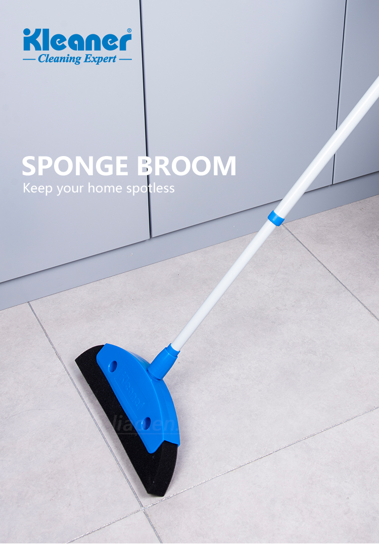 A vassoura de esponja úmida GSK001 possui uma cabeça de esponja de celulose de alta densidade que absorve até quinze vezes seu peso em água, tornando-a ideal para limpar pisos molhados, paredes de chuveiros e respingos de cozinha. A esponja é combinada com uma lâmina de rodo de borracha flexível que remove a umidade residual, deixando as superfícies livres de riscos. Uma alça telescópica de alumínio se estende de setenta a cento e trinta centímetros, permitindo aos usuários limpar sem dobrar.