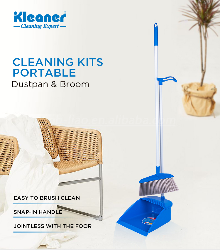 O corpo da pá de lixo é moldado em polipropileno resistente a impactos com borda reforçada. O mecanismo de inclinação usa um pino de dobradiça de aço inoxidável que resiste à ferrugem. A borda de borracha é substituível e feita de PVC flexível. As cerdas da vassoura são de polipropileno estabilizado ao calor que não enrola nem se desprende. A alça de alumínio possui uma alça de espuma e um orifício para pendurar. Todas as bordas são arredondadas para evitar lesões.